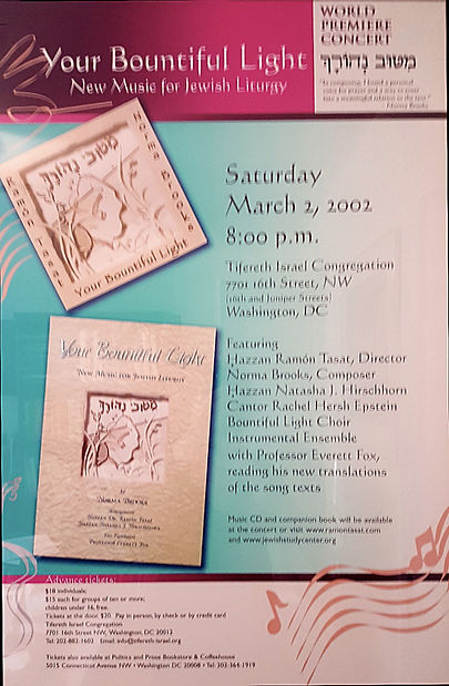 In March 2001, Hazzan Dr. Ramón Tasat created the Bountiful Light Choir and the Washington, DC, premiere of Norma's music was held at Tifereth Israel Congregation in March 2002. The Bountiful Light Choir/Instrumental Ensemble, directed by Hazzan Tasat, performed the music at such venues as Congregation B'nai Jeshurun and the Park Slope Jewish Center in New York City and Beth El congregation in Massachusetts and Congregation Ohr Shalom in New Jersey
